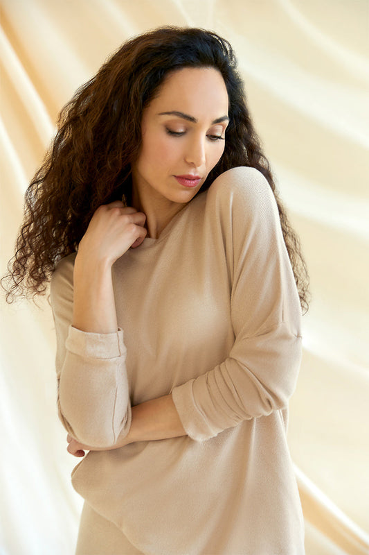 SETERY - Eleganter Sweater mit V-Ausschnitt und Dreiviertel-Arm - Ecru