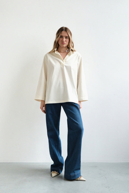 AusverkauftIVA RYCH - Hemd mit großem Kragen - Beige