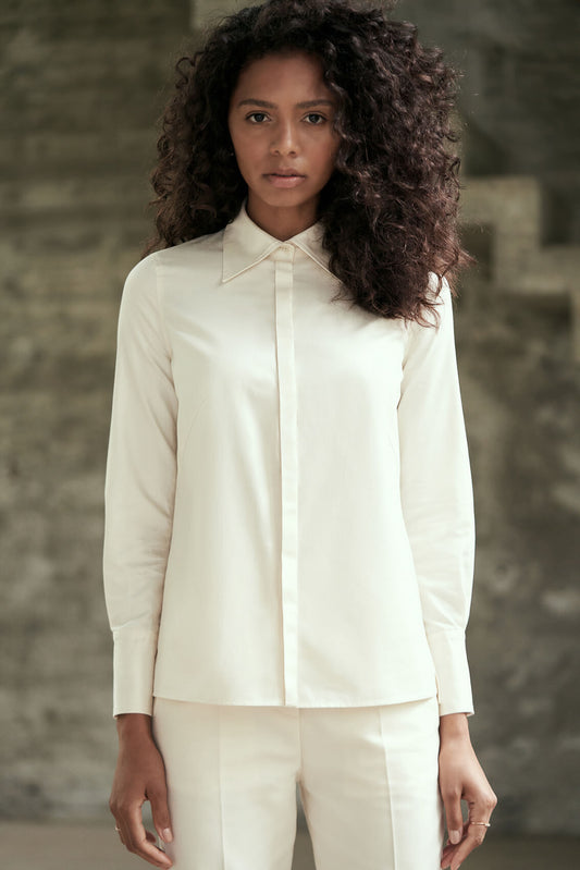 IVA RYCH - Klassisches Hemd mit Manschetten aus Leinen - Creme