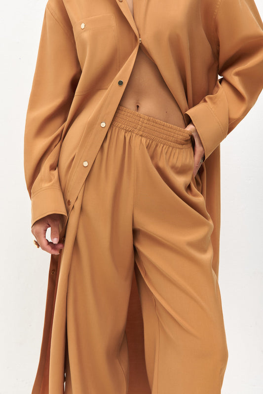 IVA RYCH - Oversized Hemdkleid-Set aus Viskose - Curry