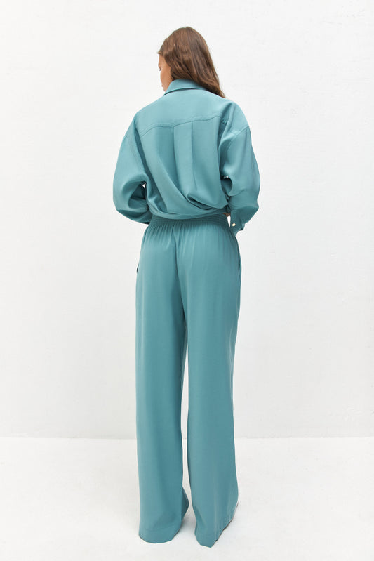 IVA RYCH - Oversized Hemdkleid-Set aus Viskose - Meergrün