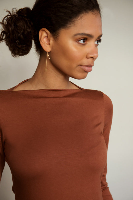 SETERY - Elegantes Langarmshirt mit raffiniertem Ausschnitt - Bronze
