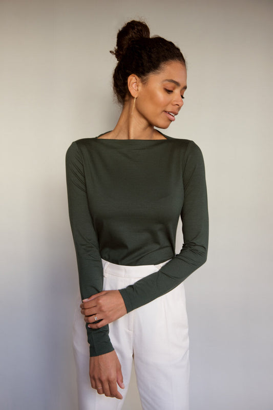 SETERY - Elegantes Langarmshirt mit raffiniertem Ausschnitt - Forest Green