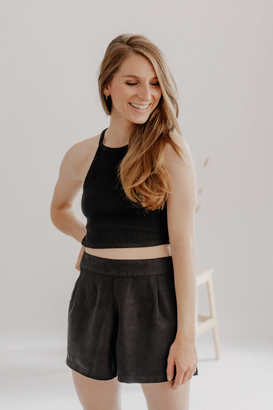 MARENIKA - Entspannte Shorts mit hohem Bund - Schwarz