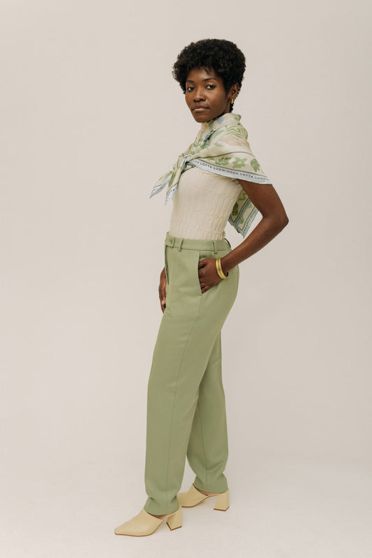 LOTTA LUDWIGSON - Stoffhose mit Fischgratmuster - Sage Green