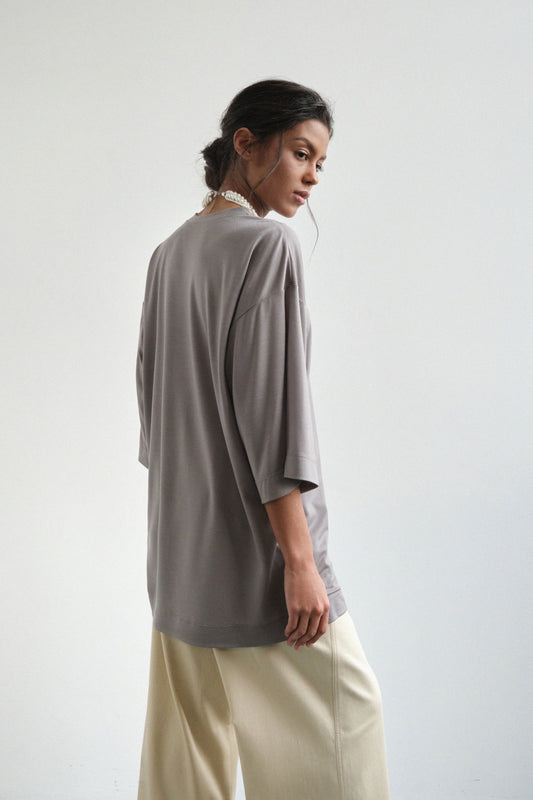 IVA RYCH - Oversize-T-Shirt aus leichter Wolle - Grau